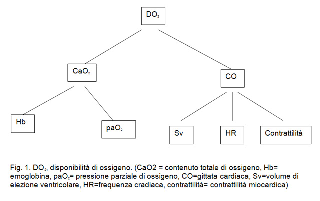 Per aumentare la sopravvivenza nei pazienti affetti da shock è necessario cercare di aumentare la DO2 ottimizzando la gittata cardiaca e il contenuto totale di ossigeno nel sangue (CaO2). La DO2 è influenzata da due componenti principali: la CO e il CaO2 (Fig. 1).